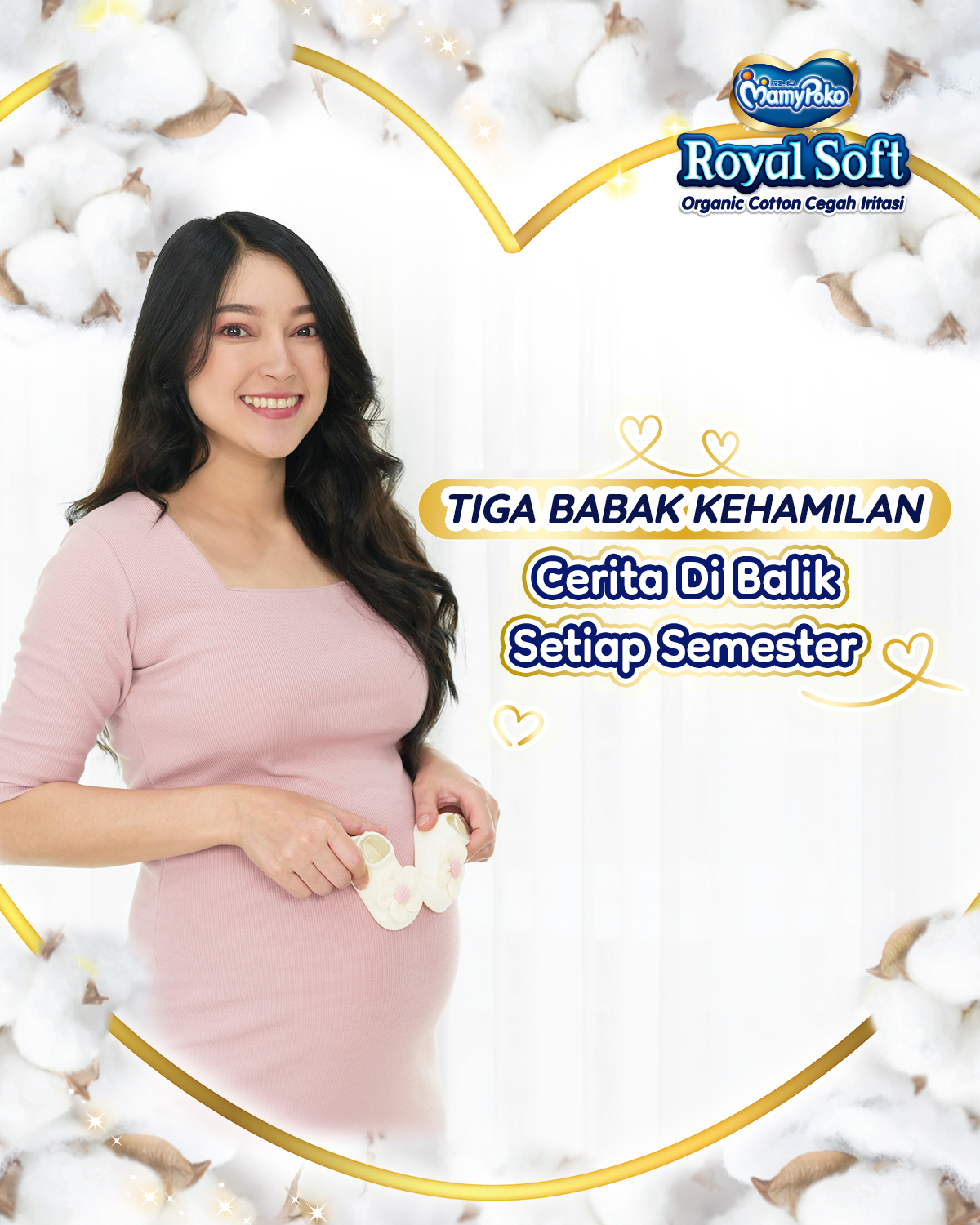 Kapas organik yang ditumbuhkan alami bebas kimia, lebih aman lebih lembut lebih ramah di kulit bayi. Kapas Organik bebas kimia ini terjamin keamanannya karena telah bersertifikasi 100% Organik. Lapisan Penyerap Ekstra Lembut MamyPoko Royal Soft yang bersentuhan langsung dengan kulit bayi, dari 100% organic cotton, sehingga meski bersentuhan dengan kulit bayi Hampir sepanjang hari kulit bayi terlindung dengan lebih aman.
